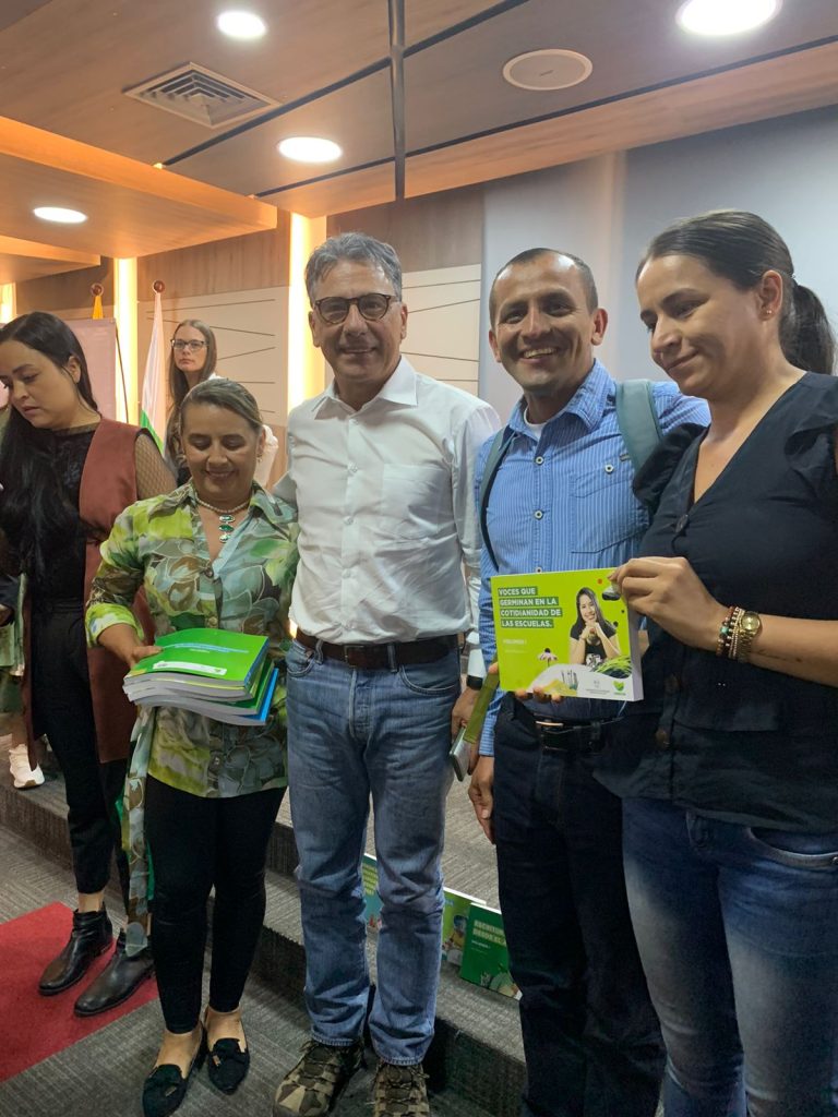 Con un sentido homenaje a los educadores de Antioquia y en compañía del Secretario de Educación del Departamento, los docentes de Pablo VI ganadores de la convocatoria de narrativas pedagógicas participaron de este evento. Allí recibieron la colección de libros de manera física, donde aparece el texto de cada uno. ¡Que orgullos maestros!