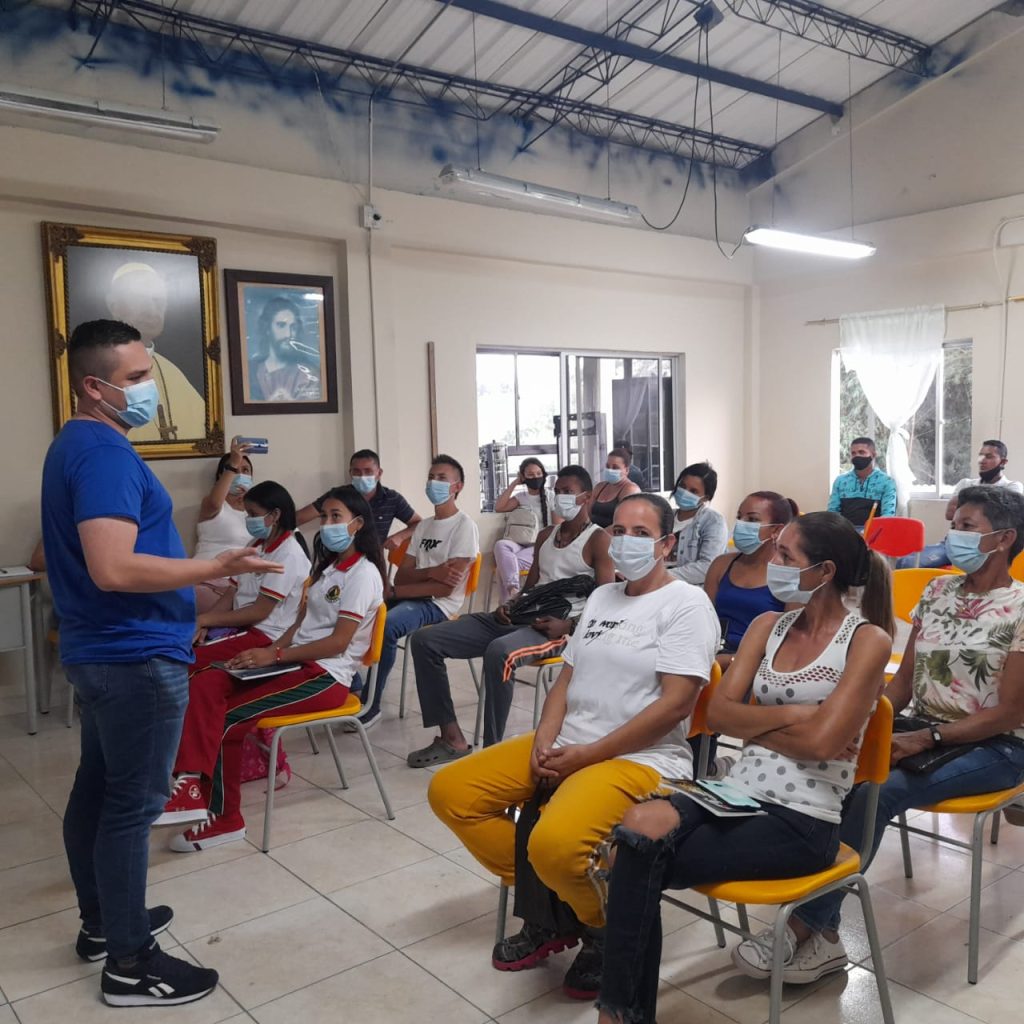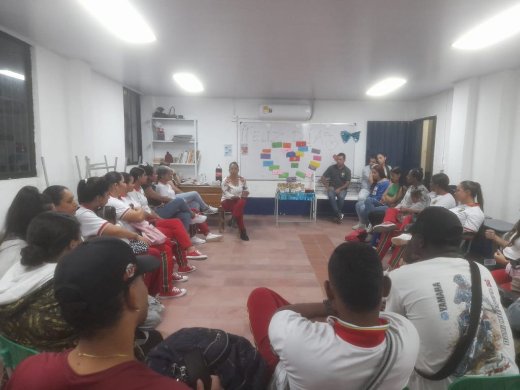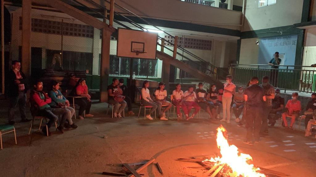 Durante la semana de inducción los docentes diseñaron un compartir alrededor de una fogata, pan y chocolate par hablar de las emociones y las relaciones con los otros. Esto permitió que los estudiantes expresaran sus ideas y contaran sus historias del conflicto y el posconflicto de la región, resaltando la alegría, la esperanza, el perdón, el respeto y el amor en todo los proyectos que se emprenden.